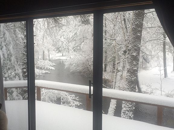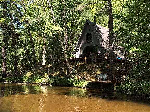A-frame cabin with one main floor bedroom, newly updated open kitchen and living room with wood stove and large slider opening onto the river side deck, and large loft. Bath remodeled with new shower, sink, toilet, water heater and floor in 2017. New metal roof installed 2017. The very best views up and down stream, with 87 feet of frontage. Cabin includes larger adjacent lot (7300 W Peterson) with additional 120 feet of frontage and room to store everything. Private drive maintained by Elko plat association.