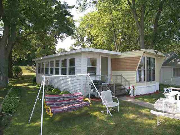 Turnkey lakefront getaway on Beaver Dam Lake (allows skiing from 1-4 pm daily). Furnished 14x60 Windsor MH with 9x28 add-on in great condition. Includes 1999 Seadoo personal watercraft (with Shorestation lift and trailor), 1994 Playbuoy 18ft pontoon with 40 HP Mercury outboard motor, paddleboat, pier, 40 foot concrete seawall and more! Panoramic views, beautiful sunsets, sandy tapered beach. Currently the lowest priced lakefront property for sale on Beaver Dam Lake. Swimming Beach Swimming Beach