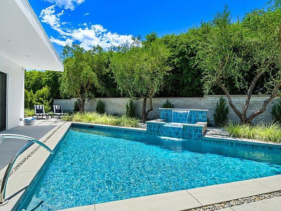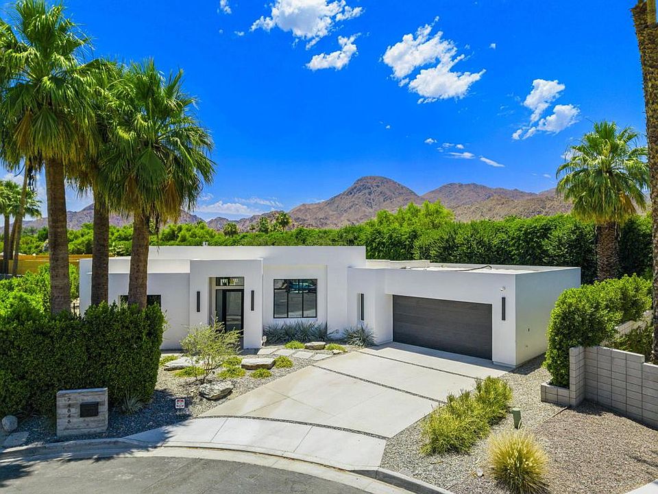 SOLAR OWNED SYSTEM & HIGHLY UPGRADED! Stunning 2022 Custom-Built home backing to Vintage Country Club - Palm Desert. Welcome to this exceptional custom home, built in 2022, perfectly situated on a private 1/4-acre cul-de-sac lot in the heart of Palm Desert. Enjoy unparalleled privacy and prestige with direct adjacency to the renowned Vintage Country Club.Enjoy beautiful views of San Jacinto Mountains! This highly upgraded residence offers 3,024 sq ft of modern luxury with soaring ceilings and an open-concept layout ideal for entertaining. Chef's gourmet kitchen features; oversized island with full wood block countertop, 8-burner Wolf range cooktop, Thermador double oven, built-in KitchenAid refrigerator and spacious walk-in pantry. Elegant great room features; coffered ceilings, floor-to-ceiling quartz stone gas fireplace, built-in buffet and top-of-the-line wine cooler. Luxurious Primary Suite features; private bedroom separation, Schumacher custom wallpaper panels, retreat area with sauna, expansive en-suite bath featuring an oversized walk-in tiled shower with bench, two private toilet areas (bidet), wall-mounted TV, full-size mirror, large walk-in closet with island, and window sunscreen. Second bedroom with private bath, bidet, walk-in closet with built-ins, and dedicated mini split system. Third bedroom with private en-suite bath. Fourth bedroom with private bath and built-in desk - ideal for office or exercise room. Outdoor Oasis: saltwater heated Pebble Tec pool with water feature, new built-in BBQ with smoker, outdoor tiled shower, artificial turf for golf pitch and putt practice, three 100-year-old olive trees transplanted from Napa Valley, multiple seating areas for entertaining. Gated yard for pets. Additional Highlights: sound proofing to the main living/dining/kitchen area. Solar-owned system. Dual HVAC with air purification system. Indoor storage room. Spacious laundry room with sink and cabinetry. Oversized garage. Security system with 4 outdoor motion-recording cameras. Built-in safe. Enjoy close proximity to world-famous El Paseo shopping and dining, as well as top golf and tennis clubs. This beautifully designed, modern home offers a premium Palm Desert lifestyle with no detail overlooked. Don't miss the opportunity to own this highly upgraded, move-in ready gem in one of Palm Desert's most desirable locations!