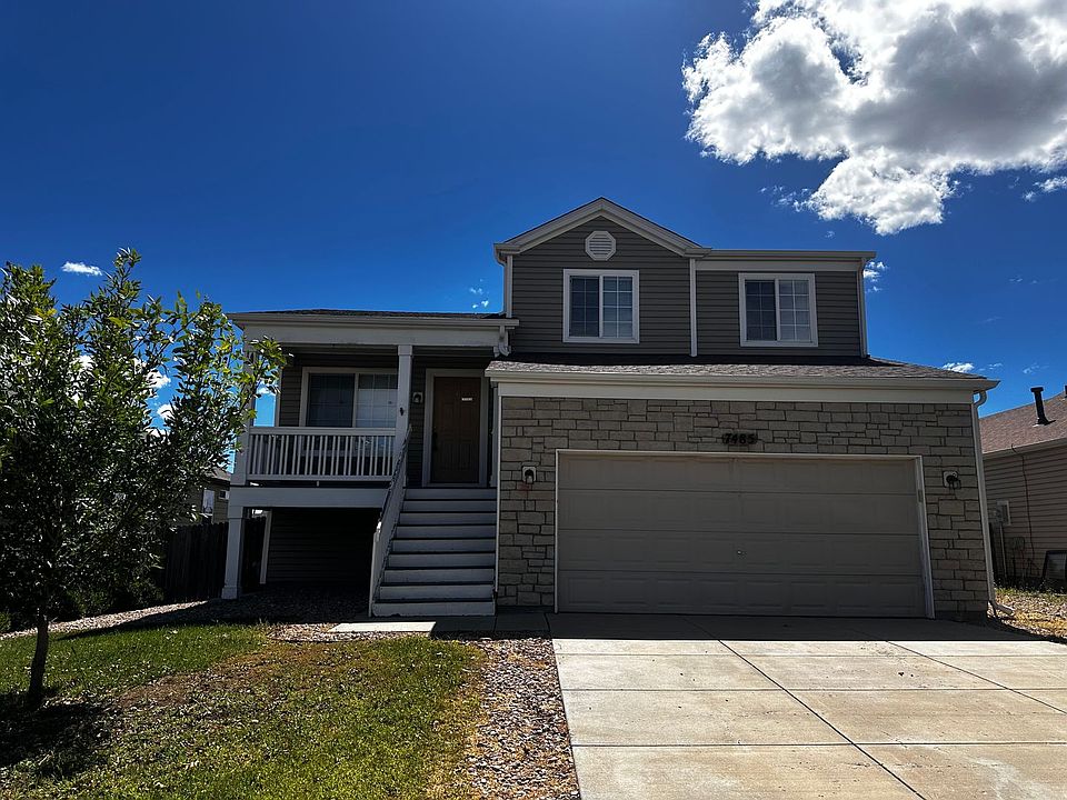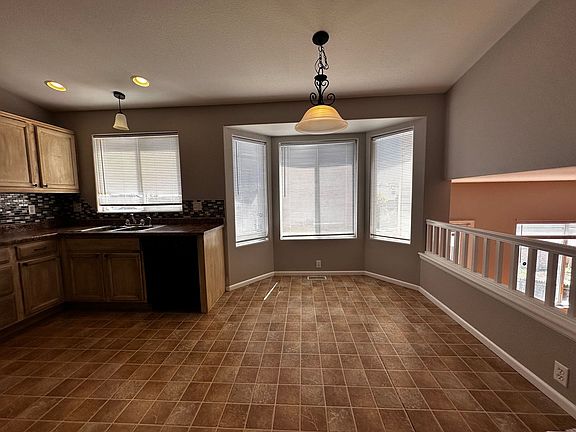 This charming home features a formal living room, a kitchen with a dining area, and vaulted ceilings. It has a family room with a gas fireplace and a walk-out. The upper level comprises the main bedroom with an ensuite, two additional bedrooms, and a full bathroom. The unfinished basement provides ample space for recreational activities and storage. The backyard is landscaped with a large concrete patio. The property is conveniently located near shopping, restaurants, schools, and parks, with easy access to Powers Blvd, Fort Carson, Peterson AFB, and I-25. Exterior stairs and trim are scheduled for paint and will be completed in October 2024.