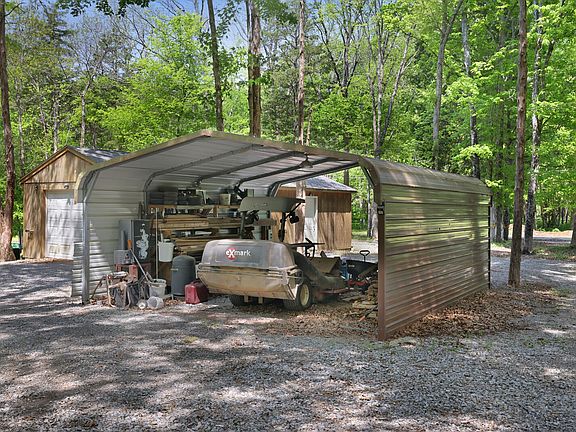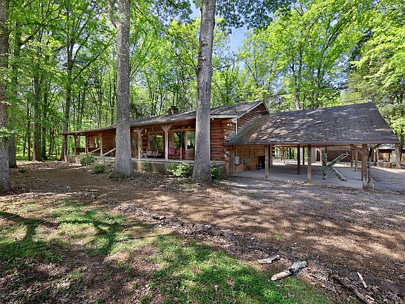 There's an abundant amount of serenity and privacy here to enjoy! Beautiful ranch style log home set amongst the trees on 2.93 acres. This peaceful haven is perfect for enjoying wildlife and tranquility. Musicians/Artists will appreciate the studio space as well. Sit in the den and gaze out onto the grounds through the expansive panoramic glass windows. Cozy up to the two sided fireplace between the living room & den. There's a great workshop with power and AC, and added storage buildings on the grounds. Beautiful custom cedar built-in book shelving and desks for those who need office space at home. The third room offers several options for space needed. Beautiful wood finishes throughout the home. The studio has three microphone patch panels, an isolation booth with acoustical panels and a sound-proof window to the control booth. The space has central heating and air and can be turned into a large bedroom.