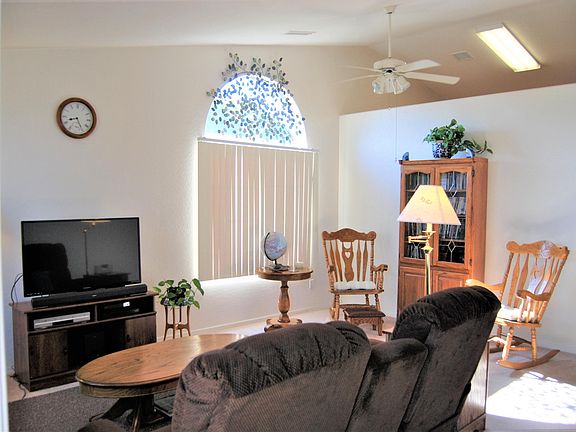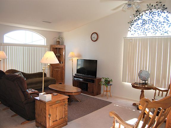 Meticulously maintained single level home on larger corner lot in highly desirable Viewpoint Community. This 3/2 home offers an open kitchen, dining niche with bay windows and family room with gas fireplace as well as a separate spacious living room. Master suite is over sized with sitting area, bedroom, walk in closet, garden tub and shower, dual sink vanity and a linen closet. Covered back patio for outdoor living with lush mature landscaping creating a private living space. The fully fenced backyard has side gate, a fenced area for dogs or garden area and producing apple and pear trees. Designated Laundry room and 2 car garage.