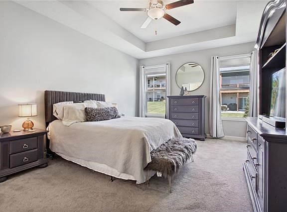 Reverse Floor Plan-Master Suite on the Main level, plus additional Bedroom and Full Bathroom. Spacious, Open Floor Plan - One Level Living and FINISHED Lower Level, featuring additional 2 Bedrooms, Full Bathroom and Family Room! Fantastic Kitchen with Quartz Counters, Tile Backsplash, Custom Cabinetry, Gas Stove, Built -In Microwave and an incredible walk-in pantry. Eat In Kitchen/Dining area with many windows. Sliding door that walks out to the covered deck and a few stairs to the backyard. Great room features the fireplace. Wood floors in the Kitchen, Great room, Entry and Kitchen! Full Front Entry 3 car garage! Enjoy the neighborhood amenities: pool, clubhouse, fitness room, walk/biking trail, greenspace and stocked fishing ponds. Maintenance provided Villa - includes lawn maintenance and snow removal. Live the easy life and enjoy a spacious beautiful home! Home is like new!