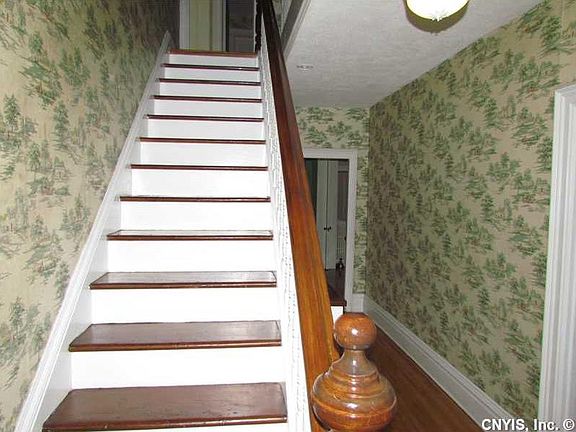 This regal beauty was home to the 1st judge of Lewis County. It has seen many updates in true spirit of original design. Site is 1 of the largest in the village. There are finished hardwood floors throughout, large kit. w/ 2 pantry areas, huge formal dining rm, living and family rooms. There is even an operating elevator. Rear of the home features 2 enclosed porches up& 2 down in addition to the front covered porch. Basement structure is in good shape& w/part of the floor carpeted.