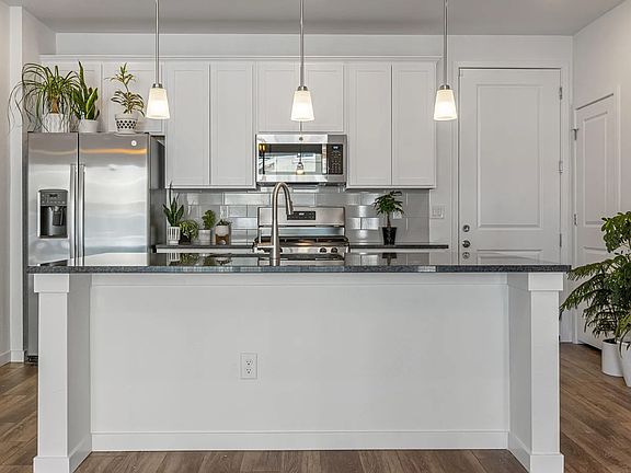 Available 10/5/25: Beautiful 2 bedroom, 2.5 bathroom spacious townhome. The large covered front porch welcomes you to the front of the house and through the front door. The main floor has a modern and open concept living room, and the kitchen boasts modern upgrades such as quartz counter tops, stainless steal GE appliances, gas range, large eat-in island, plenty of cabinet storage, and a walk-in pantry/closet. The second level hosts two bedrooms, two bathrooms with dual sink vanities, a laundry room with extra storage, and a flex space perfect for your home office or gym (or both!). The main bedroom boasts coffered ceilings with a ceiling fan, an en-suite bathroom with a dual sink vanity, and a large walk-in closet. The second bedroom and bathroom are spacious and offer plenty of closet and cabinet space for excess storage. Conveniently, there is also an attached two-car garage and plenty of storage under the stairs and in the crawl space. Green Gables is a beautiful neighborhood with walking trails and parks, a private community pool and playground, and is located near Lakewood's downtown Belmar area full of great shopping and restaurants. **TVs and plants that are pictured are not included. **Washer and Dryer is not pictured but will be included! PET POLICY: * Pets negotiable * $275 Initial pet fee per pet * $35-100 monthly pet fee per pet depending on size of pet UTILITY POLICY: * Owner will cover water/sewer * HOA covers trash/recycling * Electric & Gas not included. Tenants must retain the account for the entire lease.