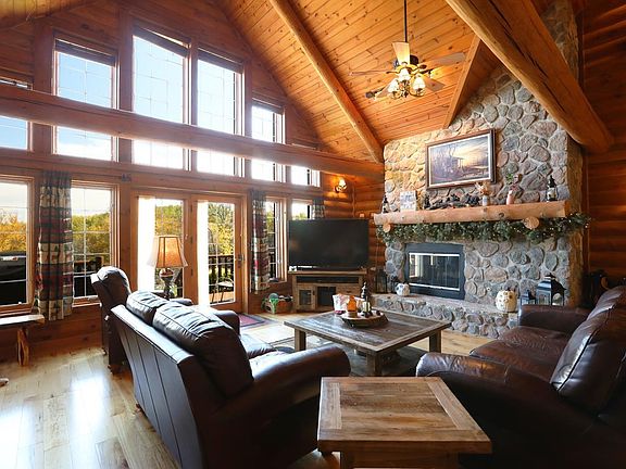 LIKE NEW, VERMILION Log Retreat Designed For Entertaining. AMAZING Location On The Rapids Offers Relaxing White Water Sounds & Blue Water Vistas. 22.9 aces & 895 ft shoreline w/opposite shoreline miles of pristine federal & state forest, yet just 20 mi to town. Built 2008, 3,985 SF, 4BR (2 Suites)/4 Kohler BA home, attached 2 st tuck under garage, attached 2 st garage w/guest quarters above, 60x30 storage bldg, boat launch & dock on Vermilion River, launch on Lake Vermilion at resort next door. Two story vaulted great rm w/massive firepl, Hickory flr, natural light pouring in wall of Anderson windows open to 4 season porch & waterfront deck. Hickory/granite kitch w/island open to dining, great rm & porch, all lakeside. Main flr suite w/firepl, glass doors to deck, WIC, dbl sink bath. Main flr guest suite. Main flr den. Main flr laundry. Upstairs, 2 XL BRs, bth, reading/game rm area, all w/water views. Generac back up generator. Click link for 3D Tour!