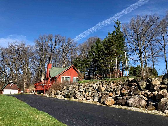 Private country setting w/long driveway; 2BR/3 bath home situated on 2 acres; Fresh paint; Hickory hardwood floors; Cathedral ceiling LR w/gas FP; Sun porch; Walkout basement; Attached 1-car garage; 64x32 barn; *Owner relocating out of state due to work;