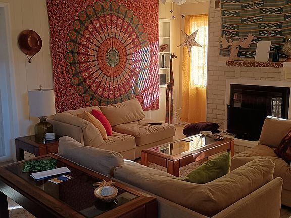 The portion of the house I am renting is on the west side of the house. It consists of two rooms: 150 sq ft and a second room, 90 sq ft, which can be an office space, studio, or mediation room, 1.5 baths (half bath is attached to larger room), and two hallway closets...roughly 330 sq ft. I live in an 50s "Old Florida" 2000 sq ft home with a split bedroom floor plan. There are beams in the ceilings which give it a nice touch. The home sits diagonally on a half acre and has it's own well water. I feel that two people can live very comfortably here, with guests visiting at times. Homeshare...split floor plan. You rent one side of home and have access to the common areas. Must love dogs. No cigarette smoking but 420 Friendly. Off street parking. Looking for a committed renter that can stay at least six months to a year. Rooms must be kept in move in condition at all times.