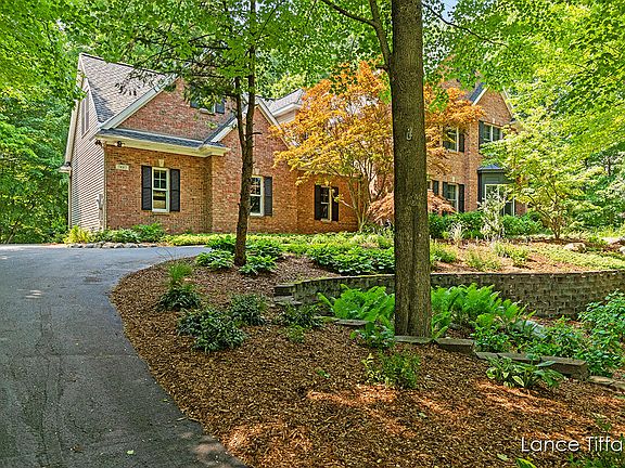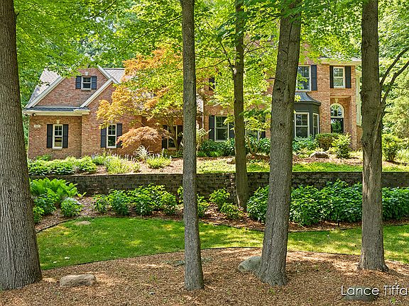 Showings begin 9am on 6/9/23. Privacy AND Convenience, two words not often used to describe the same home. Tucked in the rolling wooded hills of the Thornapple Trails neighborhood minutes from all Cascade and 28th Street have to offer, this beautiful brick home awaits its new owners. This home is complemented by the 1.1 acre park-like setting with mature trees, beautiful flowering landscaping, a manicured rear yard flooded with sunlight and a private hot tub just off your new stamped concrete patio. The mature woods lend opportunity for daily wildlife sightings. The open concept kitchen and living room feature new quartz countertops, custom tile backsplash, new fireplace mantle and surround. Enjoy private picturesque views of your backyard oasis from the cozy climate controlled porch complete with wood burning stove. Conveniently located laundry, 2 half baths, a bedroom and a reading room flooded with natural light from the bay window round out the main level. Upstairs you will find the primary suite, 2 additional bedrooms, an additional full bathroom, & a loft lead you to a large second ensuite. Your finished basement is decked out with an office, kitchenette, large entertaining area and generous storage. Full list of updates in documents.