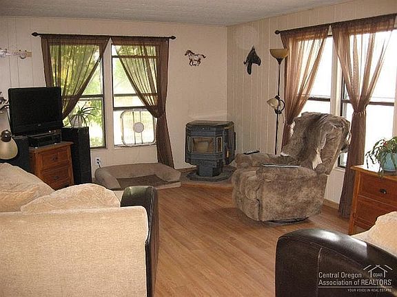 Country comfort and beautiful Gray Butte views too! Flat 5 acre parcel in great CRR location, huge yard with mature trees, shared well, 100X200' riding arena, approx. 24X50' shop includes single bay finished for use as a paint booth. Very livable manufactured home privately situated at the back of the property, has 3 bedrooms, 2 baths, great room floor plan, pellet stove, laminate flooring and new roof. With a bit of spit and polish, this one will shine!