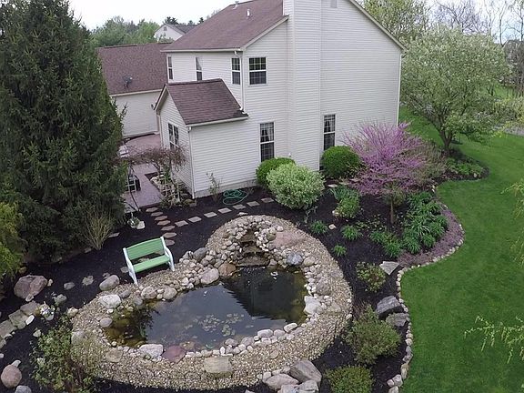This house has it all! Many updates, hardwood floors, 5th bedroom w/apartment & kitchenette, great layout, newer furnace/AC, private 1 acre setting backing to woods/nature preserve located across from the covered bridge. Koi pond w/waterfall, stamped/concrete patio w/retractable remote controlled awning, FOUR CAR GARAGE, add'l parking at private round-about, rolling terrain & gorgeous landscaping. Solid wood six panel doors thru-out. Granite, island & pantry in kitchen w/stainless applncs. First floor office. Formal dining room. Fam rm w/fireplace. Finished basement. Radon mitigation. 5th bedroom on 2nd floor has been converted to apartment w/private kitchenette, LR, BR, walk-in closet & half bath: perfect for multi-generational living/extended guests.A home like this doesn't come up often