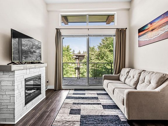 Live at "Green" by award winning developer Adera. This home top floor home has airy high vaulted ceilings and a spacious layout with an electric fireplace, in-suite laundry, and sleek granite countertops in the kitchen area. Amenities include a fully equipped fitness centre, sauna, yoga room, and lounge areas. The unit is also right across from the building's roof-top patio. The neighbourhood is surrounded by nature but is also just a 10 minutes walk away form Edmonds station. Situated in a family oriented area within Taylor Park Elementary & Byrne Creek Secondary School catchment. All measurements are approximate, Buyer to verify if deemed important. Perfect to live in or rent out.