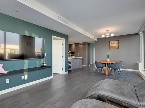 Engineered hardwood flooringDesigner cabinetsOpen concept kitchenExpansive balcony