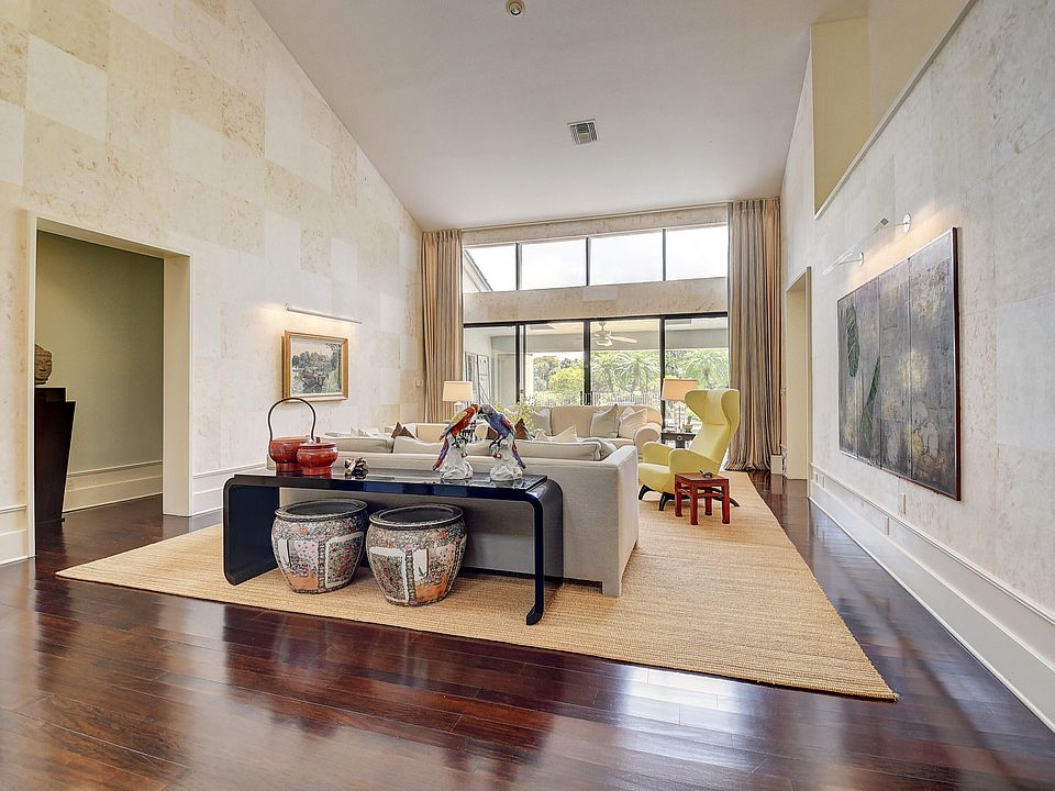 Elegantly appointed 3 bedroom, 4.5 bath home. Professionally designed . Mahogany wood plank floors, custom moldings, open kitchen and family room featuring a large granite topped island. Wonderful storage areas and beautifully appointed detailing abound in this amazing property.The home has a warm and rich feeling when you enter and has been beautifully maintained. From the entry way of the home, you can look thru to the pool area and golf course.The master suite is large and gracious and most rooms look out to the spacious pool area overlooking the 13th hole on Dye IV.There are motorized hurricane shutters thru-out. The 2 AC systems are new, and the roof is in good condition.Exclude: Living room and Master Drapes and Valance, Roman shade in bedroom ; Entry Lantern
