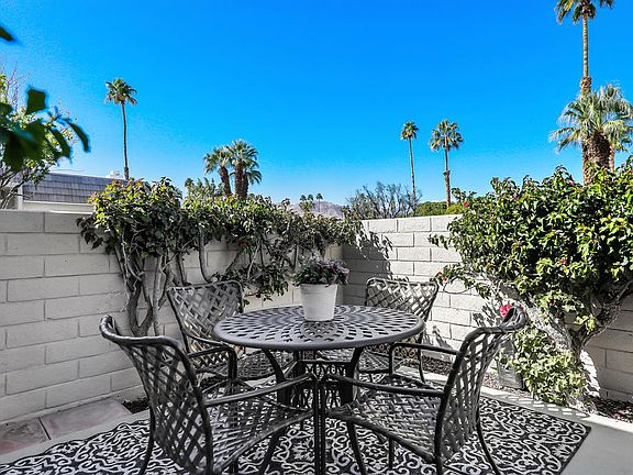 Incredible, remodeled, 3 bed. 3 bath single level condo. Very hip, chic and contemporary design. All bedrooms are suites with their own bathrooms. Dual vanities, separate soaking tub, and Large walk in closet in the main bedroom as well as access to two private patios. All new floors, new paint, new Kitchen with new countertops & appliances, new lighting fixtures, new window coverings, etc. Garage has storage cabinets and epoxy floors. Dual paned windows throughout.There's a romantic, large fireplace in the living room and dramatic high ceilings with Crown moldings. You can access the interior courtyard and front yard by stunning French doors. Three very private patios and two Have beautiful mountain views! One looks out to the Eisenhower mountain while the other looks out to the San Jacinto and Big Bear Mountains! Walk to IW Coffee, Eureka Restaurant, and soon to be Sprouts market.The community of La Rocca has a pitch and put golf course, tennis, pickle ball, pools and spas. Furnishings may be sold separately.