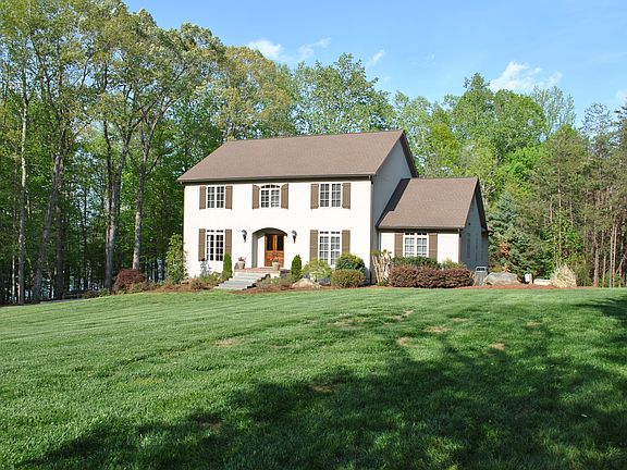 Custom-built hard-coat stucco by Steve Hurd w/4.8 acres, incredible water views with privacy. Large rooms, main floor master suite; awesome open kitchen w/silestone countertops, stainless appliances; hardwood flooring; heavy moldings, waintscoting; covered rear porch overlooks lake. Outside living spaces: firepit, porch, play area. Lots of storage incl unfinished basement w/workshop, exercise room. Minutes from hospital, town and interstate. Convenient to Raleigh/Durham, Greensboro, & Winston Salem. Neighborhood Description Pastoral neighborhood setting, private lakeside retreat on Lake Mackintosh, friendly neighbors.