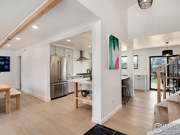 Recently renovated and move-in ready! A rare find with five bedrooms and four bathrooms, plus storage to spare. A completely redesigned kitchen topped with marble counters, stainless Kitchen-Aid appliances, solid wood cabinets and loads of natural light from windows overlooking the yard. A tree covered deck brings the song birds near while providing shade for outdoor gatherings. In addition to the large kitchen, the main floor also has a living room, dining nook, two spacious bedrooms - ensuite bath and walk-in closet serving the larger bedroom and a full hall bath for the other. Upstairs is a private sanctuary for a primary suite with twin walk-in closets, seating area overlooking the backyard, vaulted ceilings and a custom, five-piece bathroom. Half a level down is a cozy living room warmed by a wood burning stove and access to the garage. The basement is completed with a large family room, laundry, full bath, two bedrooms and a large storage room with easy access to the utilities. Sitting on almost a 1/3 acre of mature shade and fruit trees, gardening area, space for a shed and toys it'll be easy to settle in and call this home. Sub 15 minute drive to Boulder and Longmont, minutes from old town Niwot. Miles of multi use trails just around the corner, making commuting and recreation a breeze. Come by for a look, easy to see.