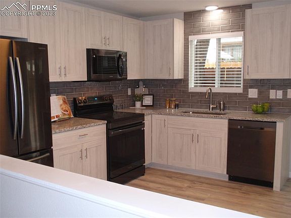 Beautiful remodeled 2 story townhome with 2 bedrooms and 1 bath. Remodel includes new custom “frame-less” cabinetry with soft close doors and drawers, new slab granite counter-tops, new appliances, new doors, baseboard and trim. New bathtub with new Moen hardware, new toilet with soft close lid, new under-mount sinks and Moen faucets, new tamper resistant outlets and designer toggle light switches, new light fixtures and ceiling fans. New permitted 40 gal water heater. New windows. Removed “popcorn” ceilings and re-textured ceiling and walls, new paint, new tile, new carpet and ½ inch pad, new luxury vinyl plank main level flooring. Central location, minutes from Olympic training center. Well kept, professionally managed complex.