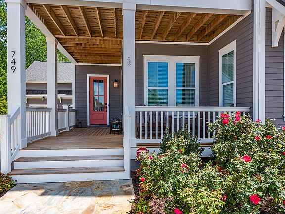 Beautiful home with private back yard facing woods in Riverwalk! Lovely architectural details and finishes. Open concept with master on main. Gorgeous granite kitchen, stainless appliances that include a gas cooktop. Large island, breakfast bar and pantry. Cozy great room with fireplace/gas logs, large master with sitting room on main level. Two secondary bedrooms and two full baths and a large loft upstairs. Lots of outdoor space with a rocking chair front porch, covered balcony off the loft area, and covered back porch. There is also a fenced, flat back yard which faces woods for privacy. Large driveway! Porch swing, washer and dryer do not convey.