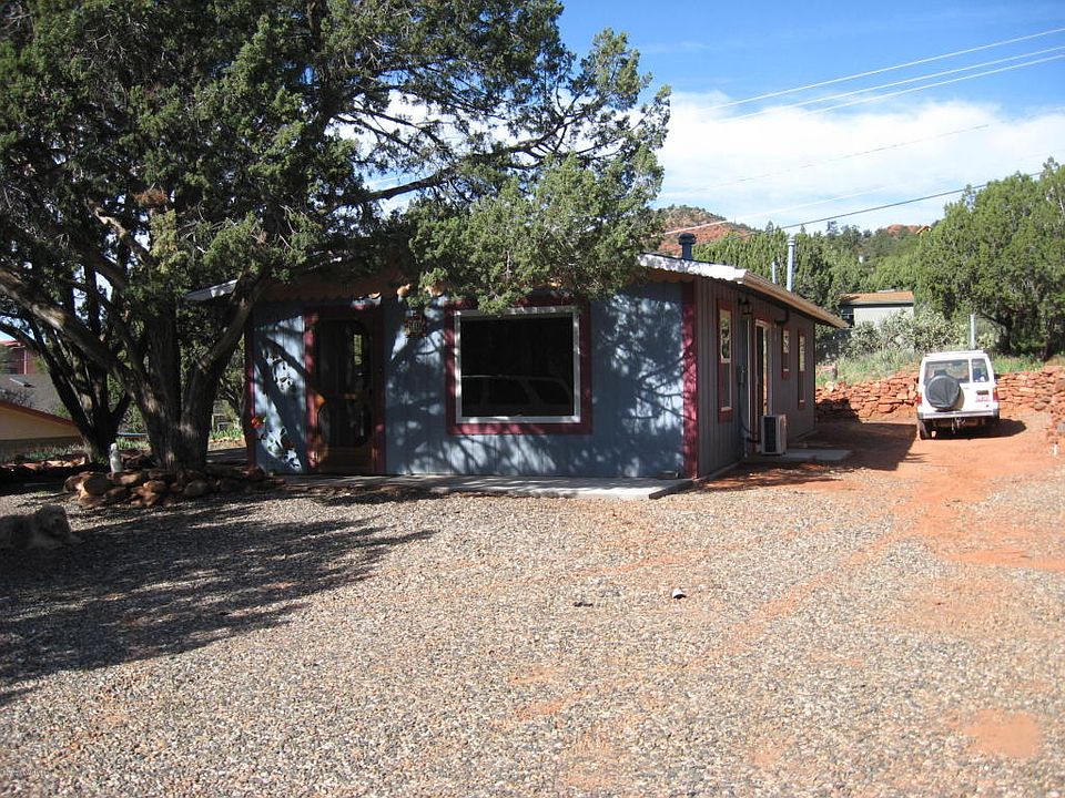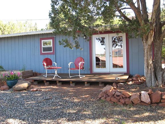 Charming country cottage with red rock views and easy access to uptown Sedona. This home has been completely remodeled with new windows, doors, flooring, heat pump and numerous custom artistic touches. With an extra building for workshop and storage, this is the perfect home for a couple, small family, artists studio, weekend getaway or rental. Lots of parking for vehicles or RV.