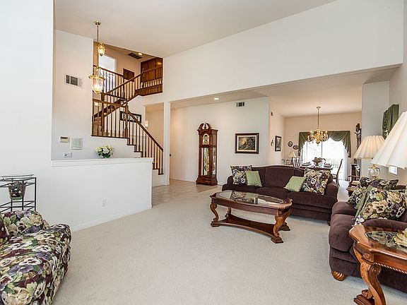 Welcome to this gorgeous two story 4 bedroom, 3 bathroom, 3115 square foot home with RV access in the highly sought after Central Simi Valley neighborhood. Light & bright formal living and dining rooms with soaring ceiling and pristine carpets. Expansive eat-in kitchen with beautiful oak cabinets, lots of counter space, double ovens, ample storage, and an entertainers wet bar. The adjacent family room has recessed lighting, wood like floors, and ceiling fan. This desirable floor plan offers a downstairs bedroom and full bath with tub/shower combo, along with indoor laundry. Upstairs there are 2 spacious secondary bedrooms with mirrored closets. The upstairs bath has a double vanity and enclosed shower/tub. Plenty of hall storage. The oversized master bedroom has a cozy gas fireplace, skylight, walk in closets, and a slider to a private deck. The spa like master bathroom has a large sitting area, double sinks, makeup vanity, Jacuzzi tub, and walk in shower. 2.5 car garage with custom flooring and sink. Enjoy mountain views from the private backyard with a built in BBQ, pergola, and lighted fountain. 50 Amp service for the RV. House equipped with Cat 5 cabling, built in sound system, and a newly installed HVAC.