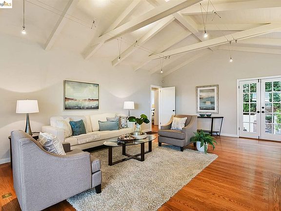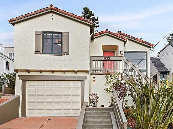 Come and enjoy this Mediterranean-style home - striking as soon as you enter the spacious living room. From the open vaulted ceiling to the architectural fireplace. he space is inviting and dramatic. Bay views highlight one end while double doors open to a courtyard patio at the other. Beyond, choose your spot in the garden - an open brick patio, the flagstone patio just above or make your own, Mature plants frame open areas in this delightful, spacious garden. The classic charm and architectural details have been maintained in the beautifully updated, elegant baths. Kitchen updates include a Bosch dishwasher, GE Café stove and a wide, white farm sink. Extensive updates add to your comfort - seismic retrofit, drainage, roof, furnace, water heater & some windows. The lower level has laundry, storage space & interior garage access; a separate entry opens to a bonus storage area. Close to Solano & Shattuck shops, parks and UC Berkeley with connections to San Francisco and beyond.
