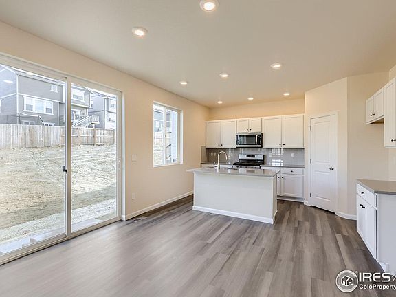 Complete now! Great two-story home with a main level bedroom with a full bathroom. Beautiful designer finishes throughout the home. Kitchen features upgraded cabinetry, island with granite countertops and a large walk-in pantry for extra storage. Luxury plank flooring throughout the great room, kitchen, dining, laundry room and secondary bathrooms. Upstairs loft creates extra living space. Primary suite features a four-piece bath with tile flooring and a huge walk-in closet. Large convenient upstairs laundry. Front yard landscaping included. Nestled in Northern Colorado, The Overlook at Johnstown Farms is located in the heart of Johnstown and offers residents ample open space and small town charm. The neighboring communities of Loveland, Berthoud, Milliken and Fort Collins are nearby with easy access to I-25 and also to the Denver metro area. Live within reach of an abundance of community parks, local restaurants and shops. Residents can also take advantage of nearby community events, attractions and the community recreation center. Prices and incentives are contingent upon buyer closing a loan with builders affiliated lender and are subject to change at any time.