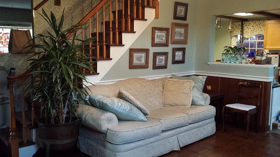 This unique house in the highly desirable South Fayette School District has recently been remodeled. All windows are Anderson thermopane and the furnace is supplemented by a geothermal heatpump (and whole house AC!). All faucets are gooseneck. Much of the electrical wiring has been updated within the last five years and there is a circuit breaker. No knob and tube wiring and no known lead paint. Most guests enter through the back door, which is up the steps from an ample gravel driveway that can easily park four cars. The laundry/mud room is filled with sun and leads to the cheery kitchen. Antiqued painted oak cupboards line the walls above a marbelized laminate counter. The floor is floating non-scratch Brazilian Cherry. Appliances are new and the stove is a double-oven with smooth cooktop. An open doorway leads to the living room with hardwood flooring, textured ceiling, and chair rail. The carpeted music room faces the road, has the main entrance door, and has a Brazilian Cherry entry area and large coat closet. An antique stained glass window highlights this room. The library has a bay window and hard wood. The first floor landing is slate. Up the hardwood steps are three bedrooms and a bathroom. Two of the bedrooms are large and one is smaller. All have plenty of closet space. The bathroom has a shower/tub combination.