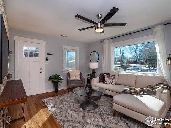 Fantastic, renovated home, walking distance to Old Town Longmont! This charming, sunny home exudes warmth & character with open concept, hardwood floors, and exposed brick. Beautifully renovated kitchen with quartz countertops, stainless appliances, peninsula, pendant lighting. Fully remodeled bathroom with subway tile, soaking tub & Euro glass shower. Relax on the delightful back deck overlooking the huge yard w/raised garden beds, chicken coop, and wildflower field, makes for relaxing outdoor living. Recent front yard landscaping includes perennials & ornamental grasses. Landscape design by Helios Landscape. 1 car garage equipped with L2 EV charger. Tons of storage in approx 100 SF stand up cellar. New water heater, newer European-style windows, paint, fencing, & buried electric lines. Space for possible ADU in large yard. Excellent condition & move-in ready. Easy walk to Roosevelt, Thompson, and Loomiller Parks & just 15 minute walk to Main Street shops, coffee, breweries, & dining.