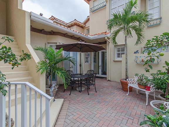 Like new waterfront town home with Southern exposure looking down canal. Deeded boat dock is right off of Intracoastal Waterway. Located in a gated community, this immaculate home is minutes to the fine shops and restaurants that Palm Beach Gardens has to offer. Accordion Hurricane shutters help make this a true lock and leave property. Private pool area is large and inviting. The original owners have lovingly maintained this special property. It has extra insulation between common walls and its guesthouse is unique in that it doesn't share a common wall. Plantation shutters and numerous built-ins round out this exceptional home.