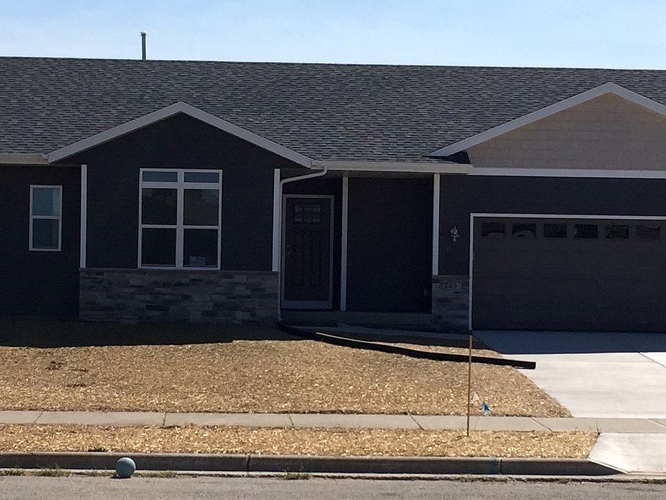 Three bedroom, two bath ranch with vaulted ceilings and two car garage.