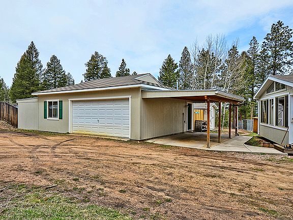 Ideal mountain living is found in this impeccably maintained 3 bedroom, 2 bath , 2 car (plus) garage and shop with room for all the toys. Stunning snow-capped peak views from the back of the house. The family room and kitchen offer a great open concept with a wood burning stove, tile flooring and an eat in nook if desired. Gas stove for cooks and plenty of cabinet and counter space. Two bedrooms and bath are also on this side of the house. The heated garage, man cave & man toy yard are not to be missed. The living room and formal dining room offer additional living space with walk-out to the front deck and back deck. The master bedroom suite sits on the end of the house with its own 5 piece bath, walk in closets and additional study/office space. Beautiful snow-capped peak views, serenity, wildlife and great access to national forest is a bonus. Make sure to note the heated garage/shop spaces and plenty of electrical options. Back yard has an area that is partially fenced for dogs if desired. Property has been meticulously maintained and mitigation work completed with trails in place throughout for hiking and fun. Circular driveway offers easy in and out on this year-round maintained road (also a bus route).
