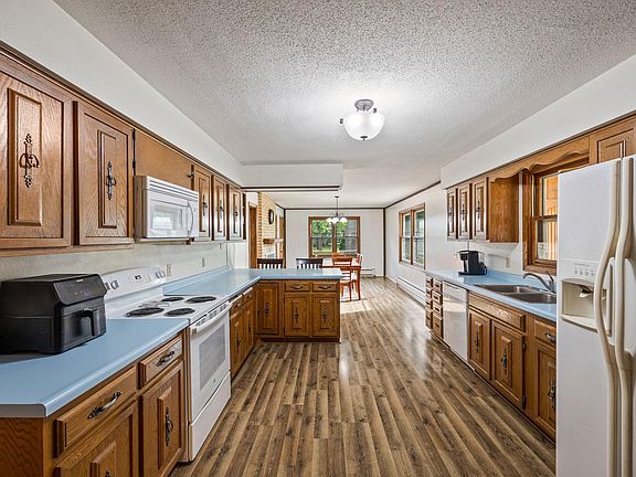 Come Check out this 4 Bedroom 3 Bathroom Home situated on a Large Corner Lot in a Beautiful Neighborhood. This Home Features 4 Large Bedrooms on One Level, the Primary Bedroom has its own private Bathroom & an additional Full Bathroom for the extra Bedrooms. The Main floor has a nice half bath and Laundry. There is a large Living Room on the main floor and an additional Family room on the main floor that could easily be converted into an office or a fifth bedroom. The Dining Room is very spacious for a large family and has a cozy fireplace for those MN Winters. A large storage shed is perfect for lawn equipment and the kids activities. Many updates throughout the is home including Newer Flooring, Updated Bathroom and much more.. The seller has removed all older finishes in the basement for a New Buyer to Add Bedrooms or entertainment area.. One will enjoy the Beautiful Minnesota Seasons from the Large Three Season Porch and the Spacious Patio...