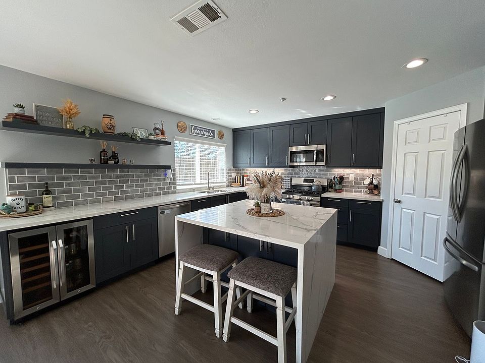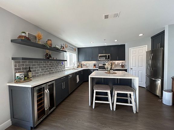 This beautiful home has been remodeled from top to bottom with luxurious finishes, sits on a huge lot, and has views of the surrounding mountains. The kitchen was designed with a chef in mind, with new appliances, including a wine fridge, upscale cabinetry, and beautiful quartz countertops with a waterfall detail on the island. New luxury vinyl plank runs throughout both levels, bedrooms have carpet. The downstairs is open concept with tons of natural light flooding the space, and an updated fireplace. Head upstairs to a wonderful landing area perfect for a reading nook or where you watch your favorite shows! You'll also find 2 bedrooms and a full bath, along with a master bedroom with an elegant ensuite with Quartz countertops and a double vanity that matches the kitchen, a large tiled shower, and walk-in closet. Also includes an attached 2 car garage, SOLAR, small dog and cat ok, no smoking. KITCHEN FEATURES: Updated Kitchen with Quartz countertops, Stove, Dishwasher, Refrigerator, Wine Fridge, Center Island, Luxury Vinyl Plank Floors UNIT/PROPERTY FEATURES: Luxury Vinyl Plank Flooring, New Appliances, Remodeled kitchen, Forced Heat and A/C, Fireplace, Ceiling Fans, New carpet, attached 2 car garage, storage shed, small dog and cat ok, no smoking. 12 Month Lease Rental Requirements: Income = 2 1/2 times the rental amount Credit = FICO scores 650+, no legal evictions (no exceptions) Good Rental References GET A JUMP ON THE RENTAL PROCESS!! Complete and submit your application online. Note: a separate application with electronic signature is required for each adult, age 18 or older. You can bring your $40 per application fee (cash or check) to your viewing appointment. Information provided is deemed reliable, though not guaranteed.