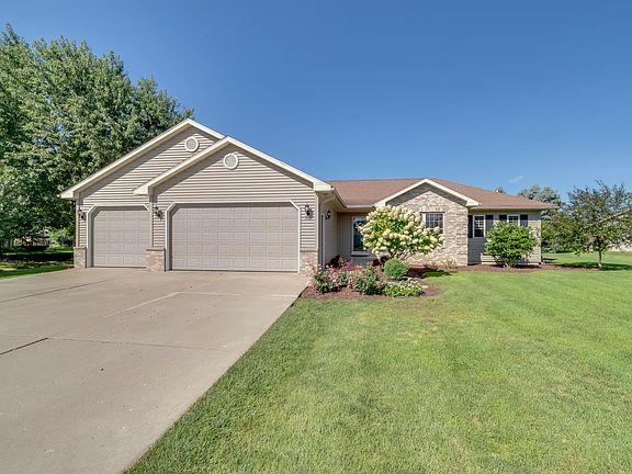 Spacious ranch with abundant natural light. Built in 2006 - original owners. Large kitchen with new stainless steel appliances. First floor laundry with front loading washer and dryer. Three car garage, exterior stone accents and professional landscaping with mature trees on a very private lot. Full basement partially finished, master on suite, walk-in closet, two bathrooms on first floor (master bath has jetted tub and stand alone shower) and large living room area.