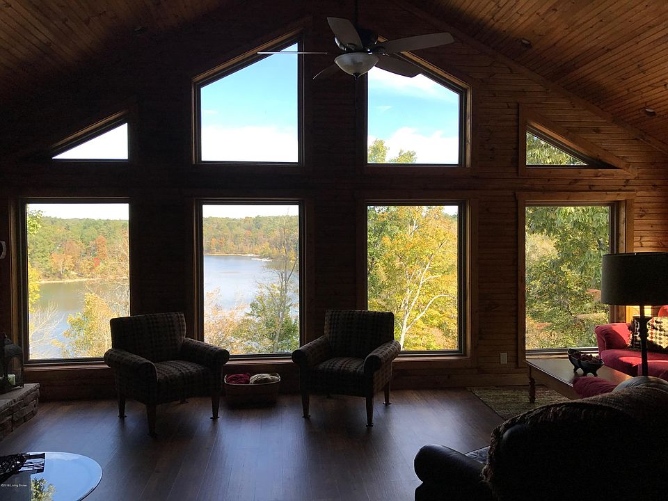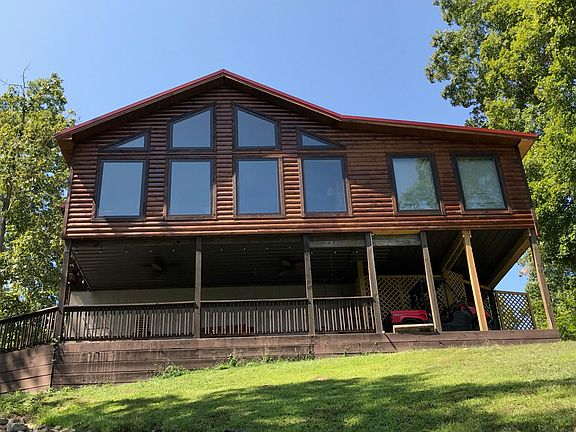 REDUCED!! Cabin at the lake, anyone? Here is one with an incredible waterfront view of Nolin Lake. It's situated on two waterfront lots that directly face the mouth of Michael's Cove. Sellers have recently done an extensive remodel, turning a great log home into a magnificent one. Three bedrooms, two and a half baths, a large kitchen, dining area, vaulted great room, and laundry room round out the floor plan. There is direct access to the dock in front of the home, and there is also an easier, deeded easement to drive a golf cart down to the dock. Minimal steps and you're on your boat! Gated community, please contact listing agent for access. Dock to transfer with COE approval. Deed golf cart easement to docks.