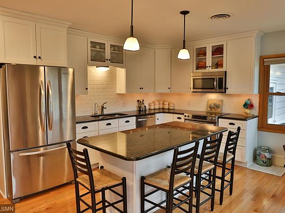 Location Location!! One of the few opportunities to own a home in town yet have the space of country living over looking the river. The home and properties beauty and maintenance show the pride in ownership that has been taken. The ranch style home has three bedrooms, two bathrooms, spacious living room, a recently remodeled kitchen with wood floors, tiled backsplash, white cabinets, granite counter tops and stainless appliances. Step down to the basement you'll love the feel of the family room featuring a wet bar & gas fireplace also downstairs are two additional rooms that could be bedrooms with an egress window or they make great offices, laundry room and bathroom. Adding to the property is the attached garage and summerhouse.