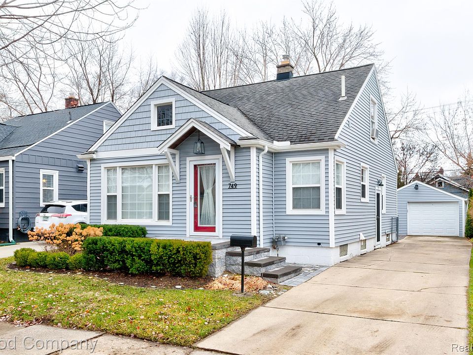 Stunning Berkley bungalow features a beautifully updated interior with a bright open floor plan, fantastic redesigned kitchen, private primary suite, and partially finished basement. Great curb appeal with a well maintained exterior and stone porch surrounded by beautiful landscaping. Light filled entry living room with hardwood floors and coved ceilings. Wonderful open dining room and kitchen with stainless steel appliances, tile backsplash, dark granite counters, recessed lighting, and ample cabinet space. Two entry level bedrooms share a full bath down the hallway. One bedroom with sliding glass doors to the back patio. Charming primary suite on the upper level with vaulted ceilings, a skylight, built-ins, walk-in closet, and en suite full bath. Partially finished basement with laundry and lots of storage space. Nice backyard with a multi-level stone patio and a detached one and a half car garage. Close to downtown Royal Oak and steps from Woodward Ave. shops and restaurants. Welcome Home!
