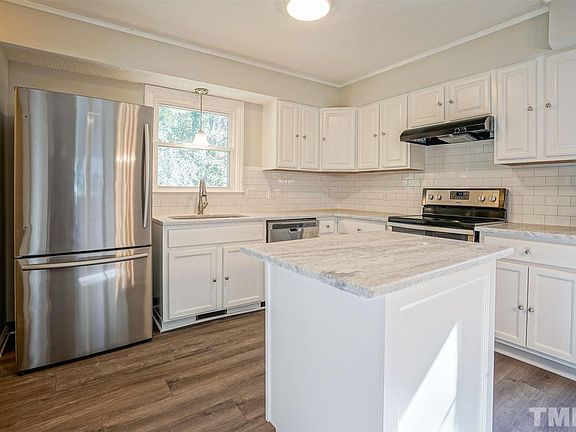 Inside the Belt Line! Nicely updated and ready to move in! Kitchen with granite countertops, stainless appliances, and subway tile backsplash.Beautiful wide-plank laminate throughout first floor.Bathrooms have new tile floors, vanities, and professionally refinished tubs.Great floor plan with downstairs master bedroom. Third bedroom comes with the perfect, cozy, loft overlooking the vaulted family room.The back deck offers peace and privacy. Close to downtown Raleigh, I-440 and Walnut Creek Amphitheatre.
