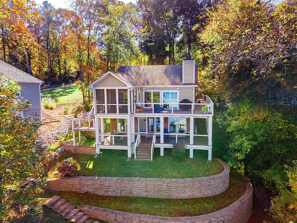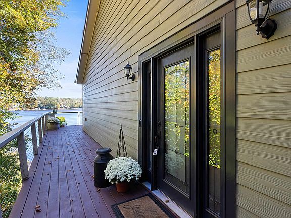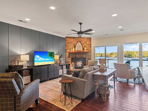 Live the lake life! This exquisite lake front property with private boat house and slip with boat lift located on the deepest part of the lake. Beautifully renovated home with gorgeous floors, large kitchen, and breathtaking views from most rooms of the home. Two tiered decks overlooking the water plus a screened porch. You'll love the cozy wood burning fireplace. You'll love the primary bedroom and spa bath with unparalleled views of the lake. Stage Earth Pure Geothermal HVAC. This gated community has many amenities including swimming, beaches, playground, pavilion, and more! Possibility to add a detached garage. Make sure you view interactive virtual tour!