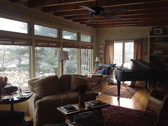 Mid-Century Contemporary-easy living. Open living room, dining room, kitchen. Simple design, original kitchen and bathrooms. Lots of light on 1st floor and in the finished part of the basement, shelves, built-ins. Efficient and convenient. New Pella windows, air conditioning. Gas fireplace. Gas heat and stove.