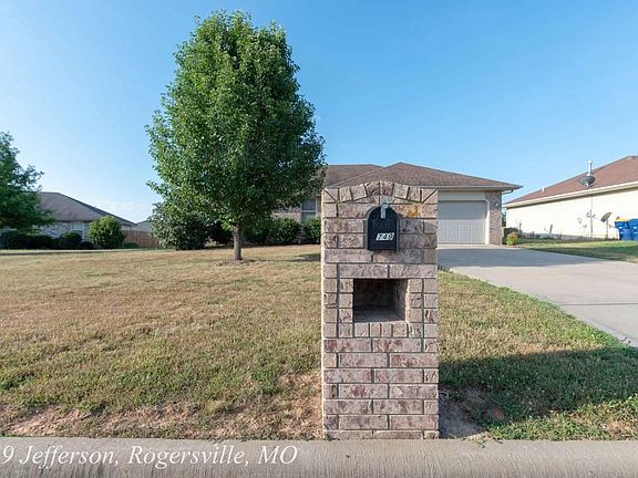 749 Jefferson Ct., Rogersville, MO 65742. 3/2/2 with brick front and vinyl sides. Living room has vaulted ceiling and gas fireplace. Split bedroom floorplan in Rogersville school district. Come check this one out!