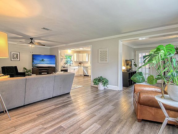 Tucked away in a cozy neighborhood sits this charming, newly renovated ranch home. This home shows like a model and is move-in ready! Upon entering the home you are greeted by a spacious open floor plan with large windows allowing in the natural light. Gorgeous LVP flooring flows throughout the home. Crown molding and cased doorways add a touch of charm! Off the living room you will find a beautiful space which would make an ideal home office or formal dining room! The kitchen is sure to impress any chef with bright white cabinets, brand new stainless steel appliances and two windows. A well lit laundry room boasts plenty of room and built in storage! At the back of the home, create a spa-like retreat in the primary bedroom which boasts access to the backyard, a large walk-in closet and astunning, newly renovated attached bath! Three additional bedrooms are generous in size and share a full bath. Outside you will find a large shady backyard, enclosed by a fence. With enough space to add a pool, workshop or just allow children or pets the space to safely run and play. A brand new wooden deck beckons you to place a couple of chairs and just relax on a weekend morning! This home boasts many upgrades including a new roof, hot water heater, windows and updated wiring throughout the entire home! The HVAC system has been updated with three additional vents, two additional returns and multiple replacements throughout the duct work system. No flood insurance is needed and NO HOA but with access to tennis courts, a playground, pool and a bike path you'll be loving life in this community! This stunning home will not last long, come see your new home today! **Short-term rental opportunity if buyer meets criteria.**