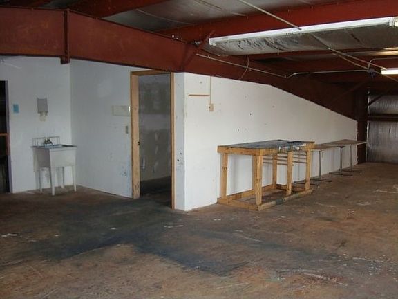 This 3600 square foot commercial building is currently configured for 2 businesses. One unit features a reception area, 12x14 overhead door, office & additional multi-purpose room. The 2nd unit has a 12x14 overhead door & 3 partitioned areas, one with a commercial type exhaust system. 2 restrooms share a hallway between the units. Overhead storage spans approximately 50% of the building. Free span steel construction makes this building easily adaptable. Zoned light industrial
