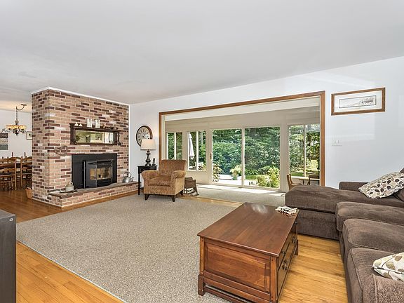 Privacy abounds on this beautifully renovated ranch on almost 1 ac. Large remodeled eat-in kitchen w/lots of counter & cabinet space, granite, stainless steel appliances & recessed lights. Spacious LR w/pellet stove & separate dining room. Finished enclosed porch off LR, remodeled bathrooms, mud room, hardwood floors, finished walkup lower level, hot tub, patio, tons of storage and much more.