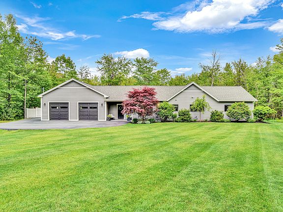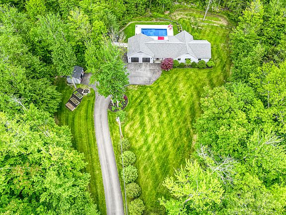 Nestled on 2.6 acres of beautifully landscaped land, this charming one-level home offers a perfect blend of elegance and comfort. The meticulously manicured grounds are a testament to thoughtful design and care, featuring an in-ground heated pool and hot tub that promise relaxation throughout the year. A paved driveway leads you to this serene oasis, where raised garden beds invite you to cultivate your favorite flowers, herbs, or vegetables, adding a touch of nature to your living space. As you step inside, you'll be welcomed to an open-concept living area that exudes warmth and spaciousness. The vaulted ceilings create an airy atmosphere, enhancing the sense of openness and light. The living area seamlessly flows into the dining space and kitchen with a large island, making it ideal for both daily living and entertaining guests. The home is built on a heated slab, ensuring comfort during cooler months and maintaining a consistent, cozy temperature throughout the year. The primary suite is a private retreat, offering a spacious bedroom with ample natural light, a walk-in closet, and an en-suite bathroom. Two additional bedrooms provide comfortable accommodations for family or guests, each thoughtfully designed with ample storage and large windows. This property is a haven for those who appreciate outdoor living, with plenty of space to enjoy the beauty of nature. Whether you're lounging by the pool, soaking in the hot tub, or tending to your garden beds, this home provides the perfect backdrop for a peaceful and fulfilling lifestyle.