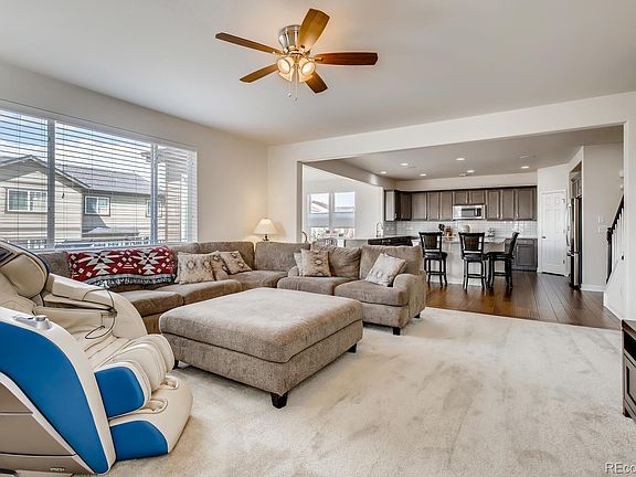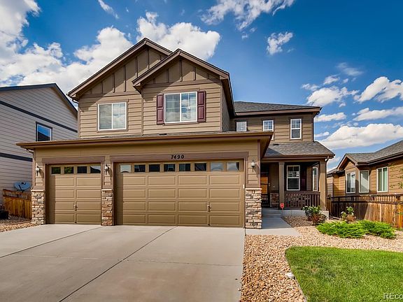 Incredible opportunity in exclusive Cobblestone Ranch with mountain views! This 6 bedroom 4 bathroom south-facing stunner features well over 4000 sq ft of living space and upgrades throughout. You will love the massive great room with your high-end, open concept chef's kitchen featuring stainless GE appliances, granite counters, and upgraded cabinetry. The kitchen opens up to both a large living room with gas fireplace and the light-filled sunroom adjacent to the custom backyard deck. You will find a bedroom/office and half-bath on the main floor, followed by four additional bedrooms upstairs including the master bedroom, large bonus room, and second floor laundry! The welcoming 5-piece master bathroom features tile floors, granite counters, and his and hers walk-in closets. Your family will have tons of room to spread out with over 1100 sq ft of finished basement space for your additional media room, game room, or play area! The basement also features the 6th bedroom and additional 3/4 bath! Priced to sell, this one will not last long! There is nothing to do but move in! Too many features to list, you have to see this one for yourself. Formal dining, huge deck, energy efficient front storm/screen door, furniture negotiable including massage chair, brand new roof! Super convenient location in the country near Hidden Mesa Trail, Gateway Mesa Open Space, and Wrangler Park but only 15 minutes to Whole Foods, Target, and popular shopping! HOA includes garbage/recycling, community pool, 2 parks, tennis and pickleball courts, basketball court. Schedule your tour before this one is off the market! Matterport 3D Tour! https://my.matterport.com/show/?m=TFuY1DnjdGz&mls=1