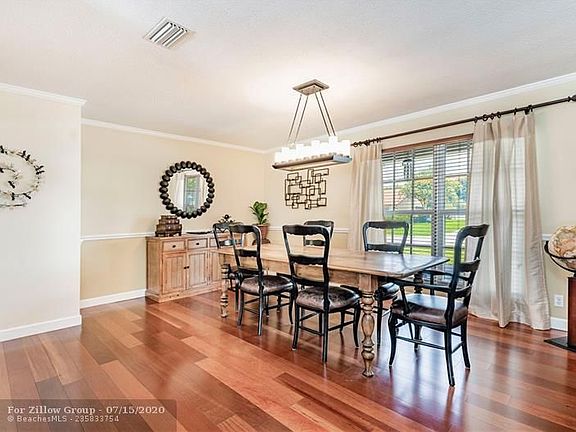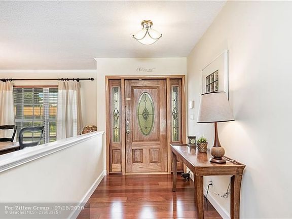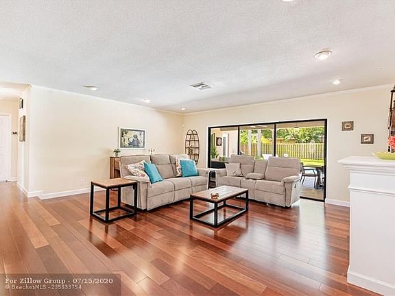WOW! This 4 Bedroom 2.5 Bathroom home is turn key! On a beautiful corner lot! Home features updated kitchen w/ granite counters, tumbled marble backsplash, wood cabinets, and stainless steel appliances! Gorgeous real Brazilian cherry wood floors throughout the home! Master bedroom is spacious with pool views! All bathrooms updated! Most windows/doors impact glass! Numerous storage closets! Large laundry room is a dream! 2 Bathrooms have cabana doors to pool! Amazing fenced in backyard features spacious covered patio complete with Tvs & fans! Sparkling pool with new diamond brite! Roof replaced 2004. AC replaced 2014. Washer/Dryer: 1 year new! Amazing circular driveway AND additional driveway in front of coverage. Tons of parking! Showings start Saturday 7/18/20 2-4 pm Open House!