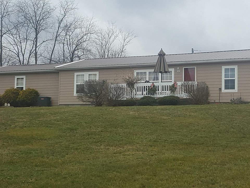 Move in ready! 3 bedroom 2 bath home on 4.5 acres in Licking Valley Schools. Cedar wood siding throughout the interior of the home. Newer metal roof, central air new in 2016, new water heater, fabulous family room and a very well maintained home! Detached 24X40 3 plus car garage/workshop with 12ft ceilings and a 10ft overhead door. Beautiful scenic views!