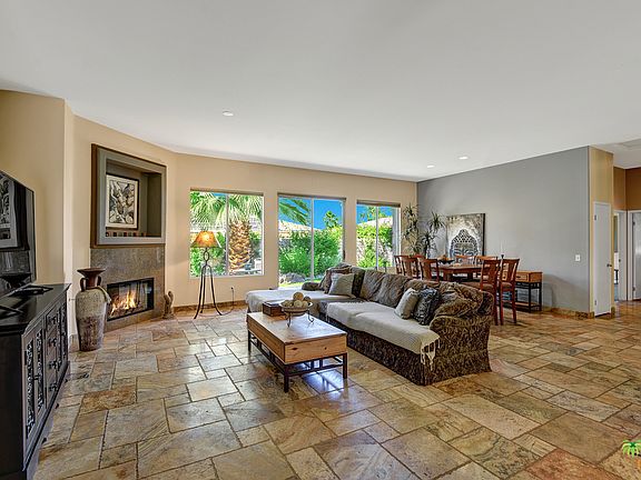Located in the gated community of Colony Cove, this traditional home sits on a large corner lot, with views of the surrounding mountains. Offering three bedrooms with two baths, and an open kitchen with granite countertops and natural light. The private courtyard has a south facing pool and spa. It has a large master suite with dual walk in closets, a double vanity and a big bathtub and shower. Situated in an ideal location within Indian Wells